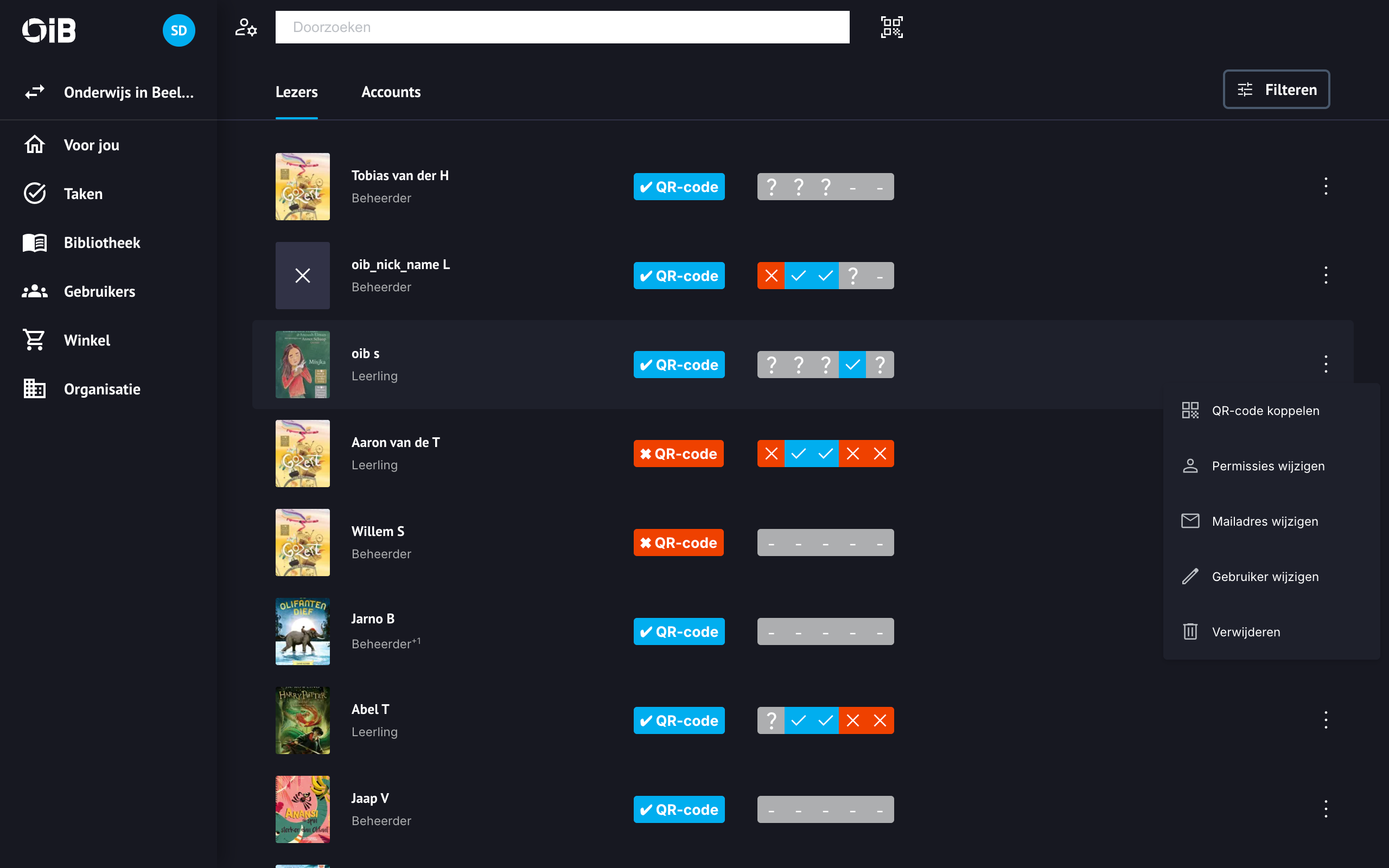 Gebruikers met de rol beheerder mogen accounts van andere gebruikers op school beheren. Als beheerder kun je nieuwe gebruikers aanmaken, bestaande accounts aanpassen en ervoor zorgen dat iedereen de juiste rol en rechten binnen de Leesapp heeft.