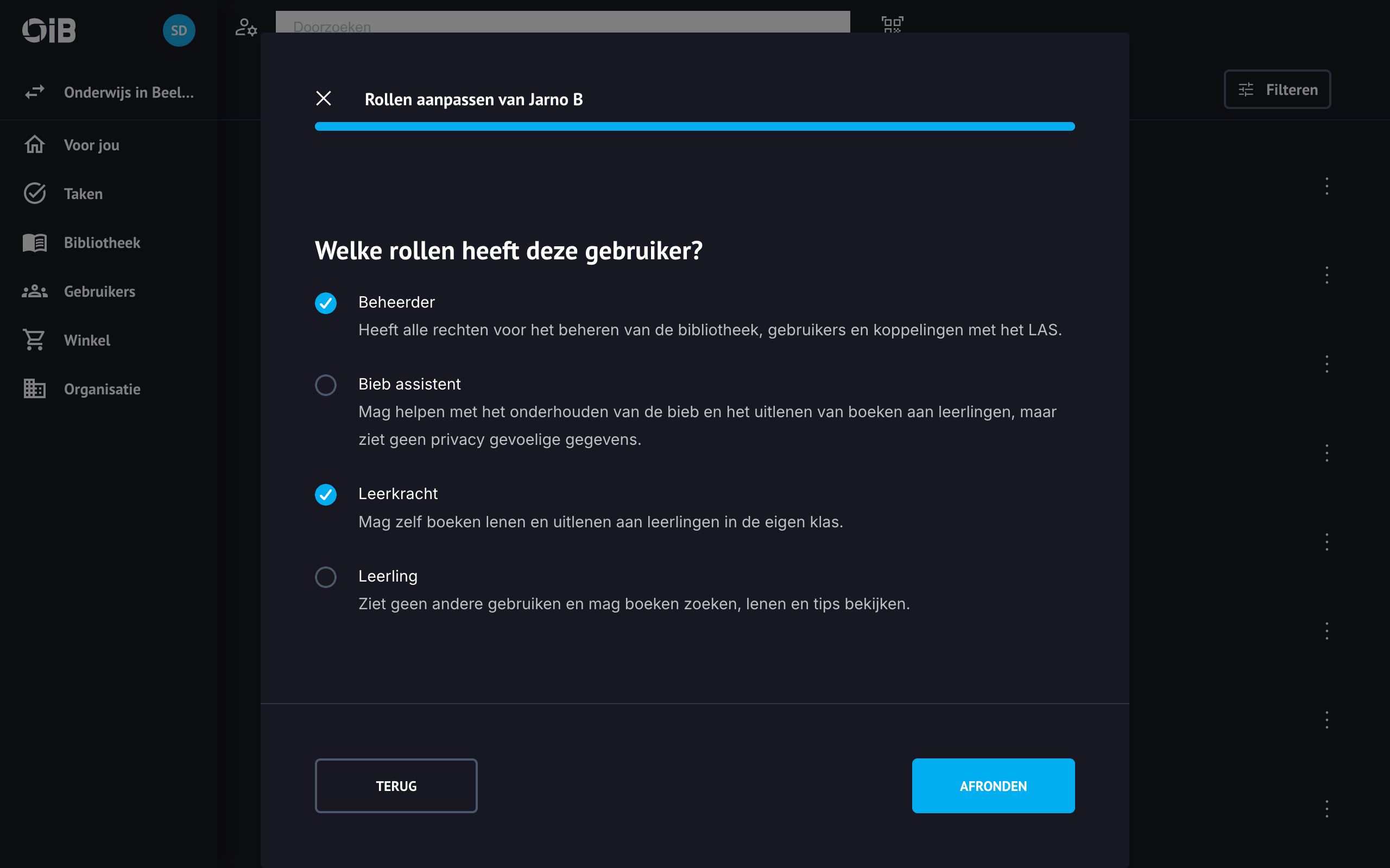 Rollen worden automatisch toegewezen en gebruikers met een mailadres in het administratiesysteem worden automatisch uitgenodigd voor de Leesapp.