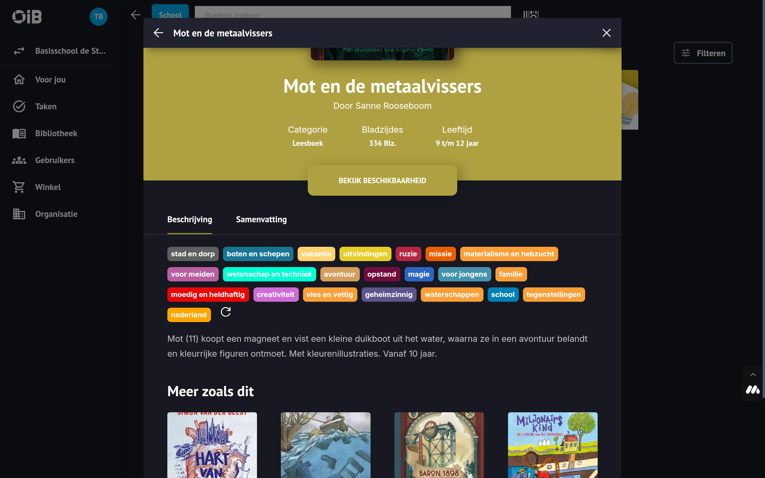 Nadat je een boek hebt gevonden in de Leesapp, vind je op de boekpagina uitgebreide informatie over dat boek, waarmee je in één oogopslag inzicht in de inhoud, thema’s en beschikbaarheid krijgt.