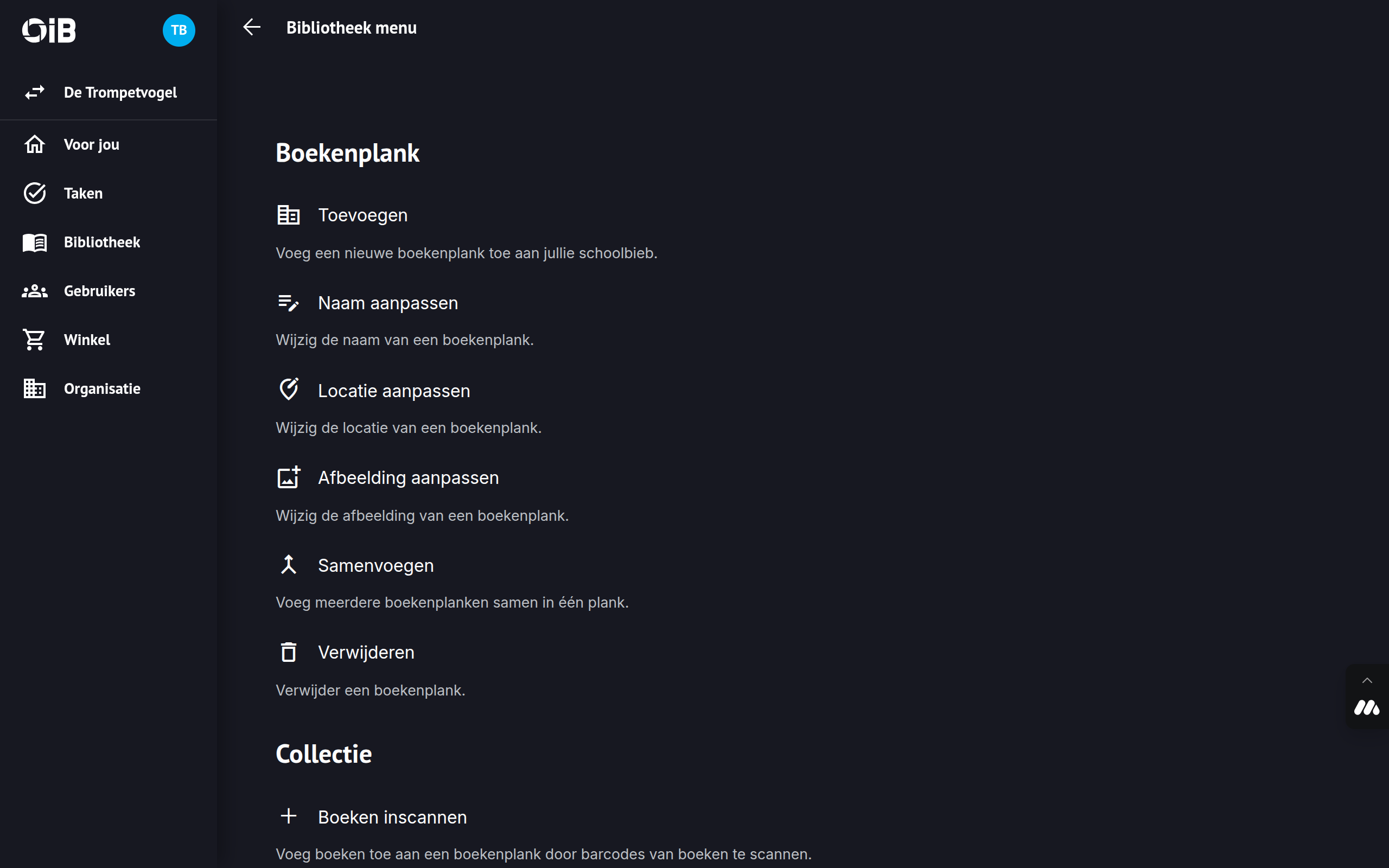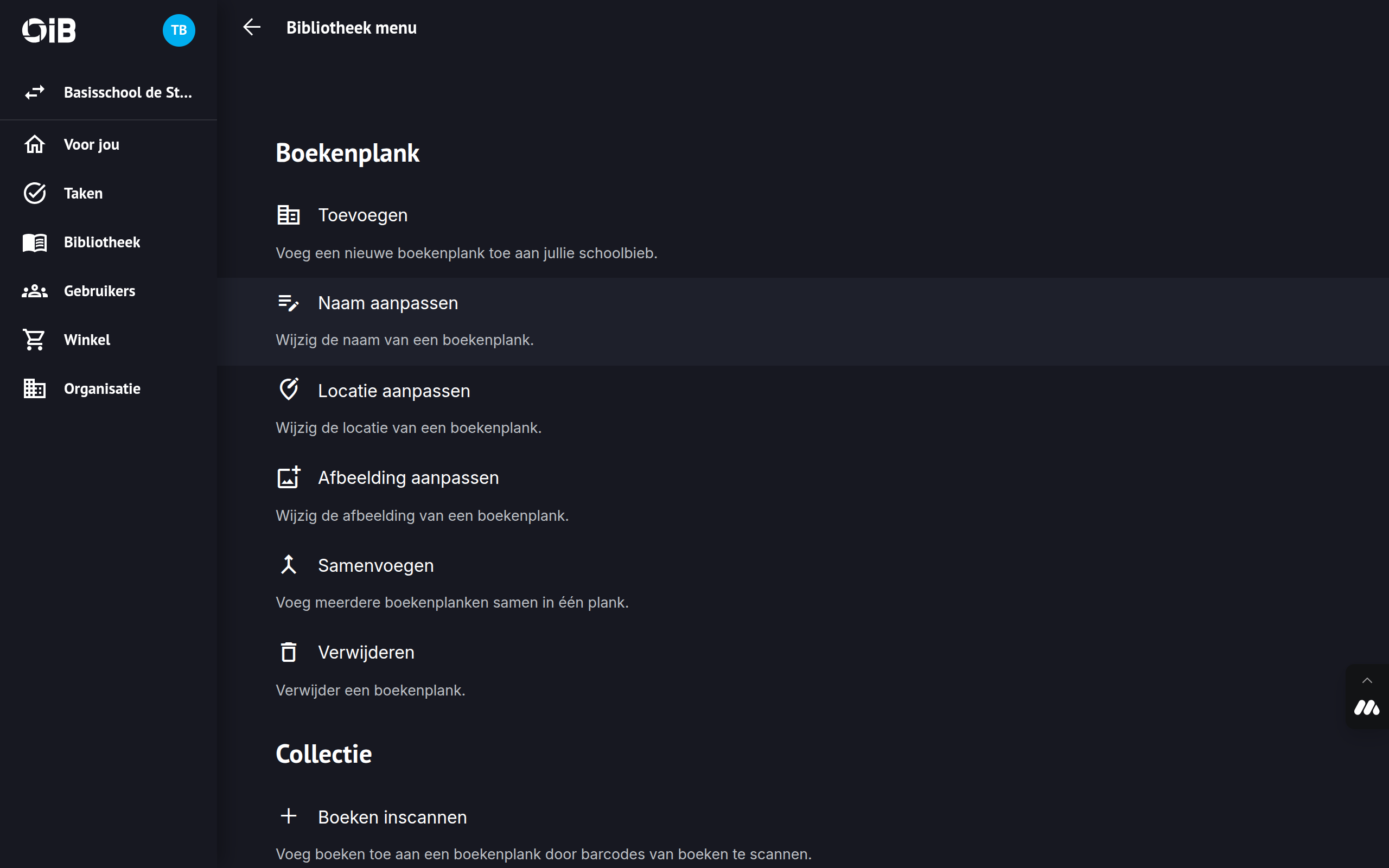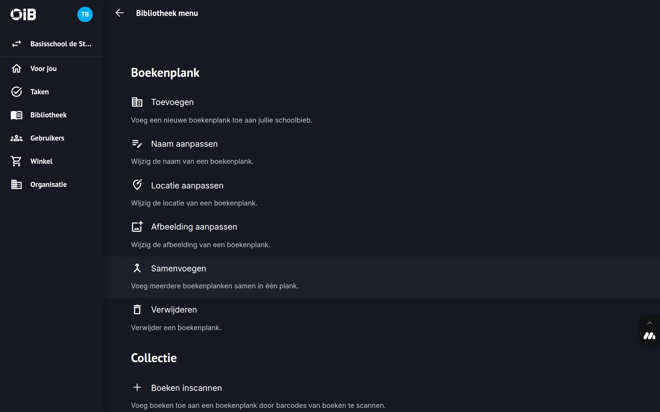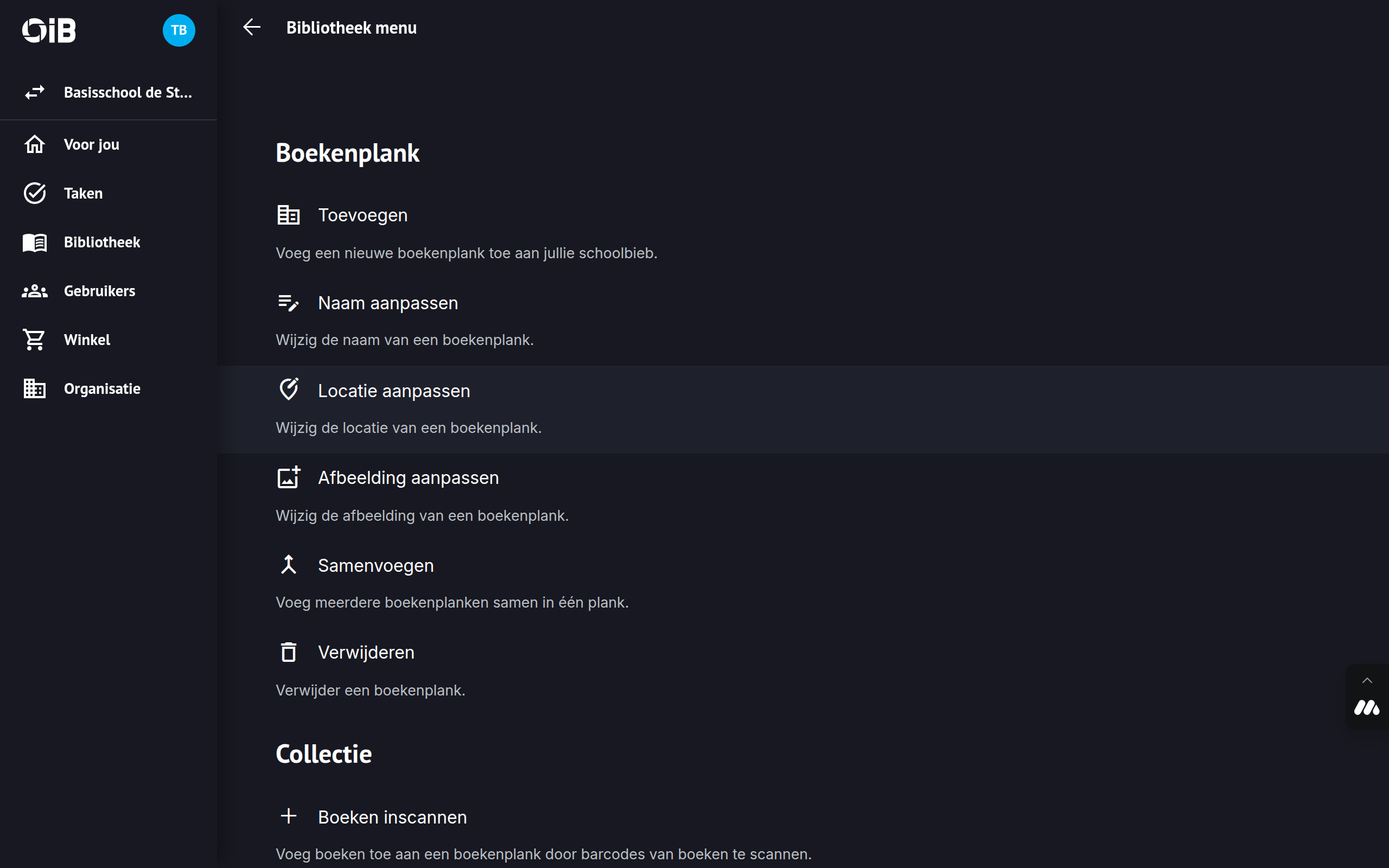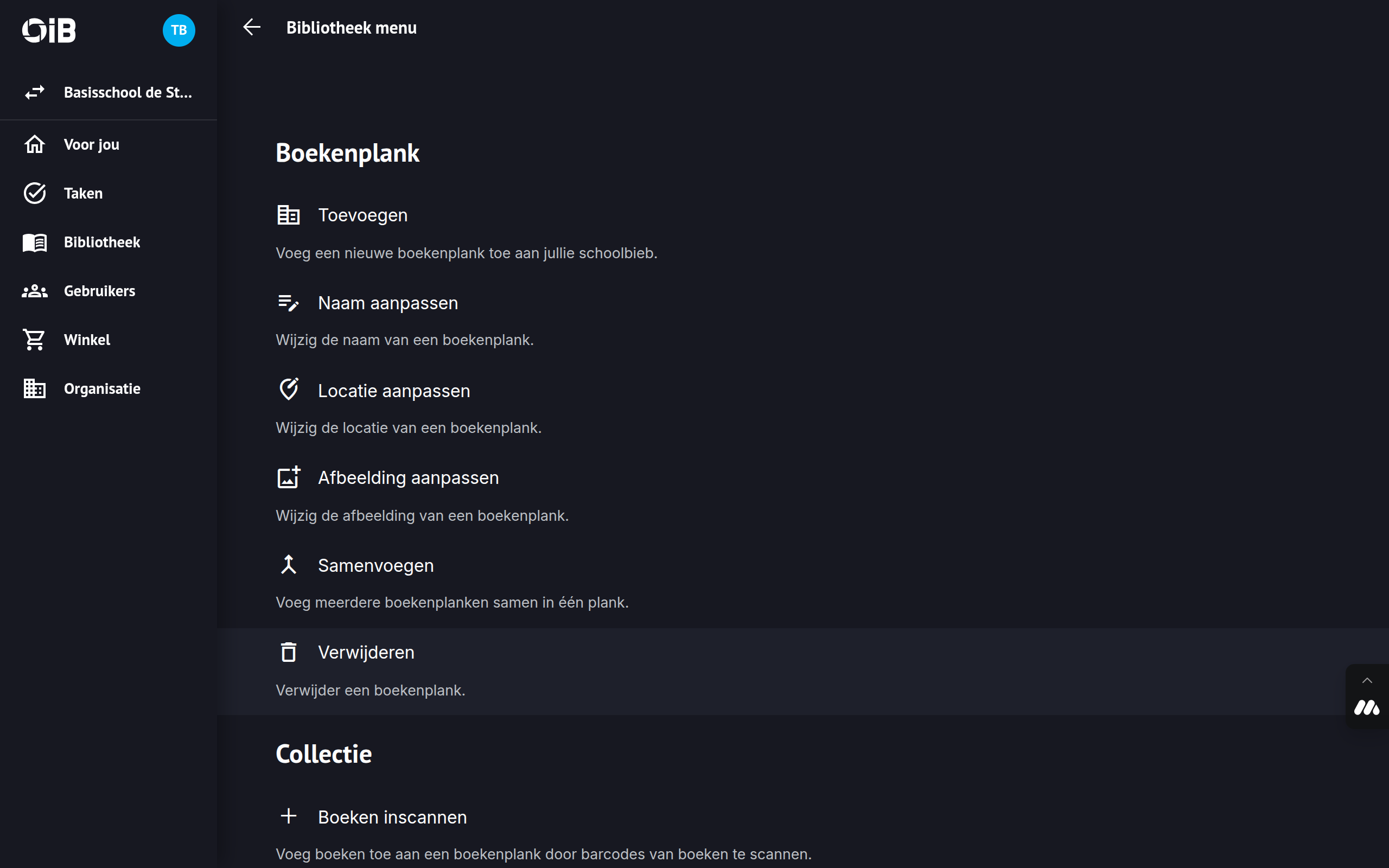 Om een boekenplank toe te voegen klik je in het bibliotheek menu onder het kopje boekenplank op de functie toevoegen.