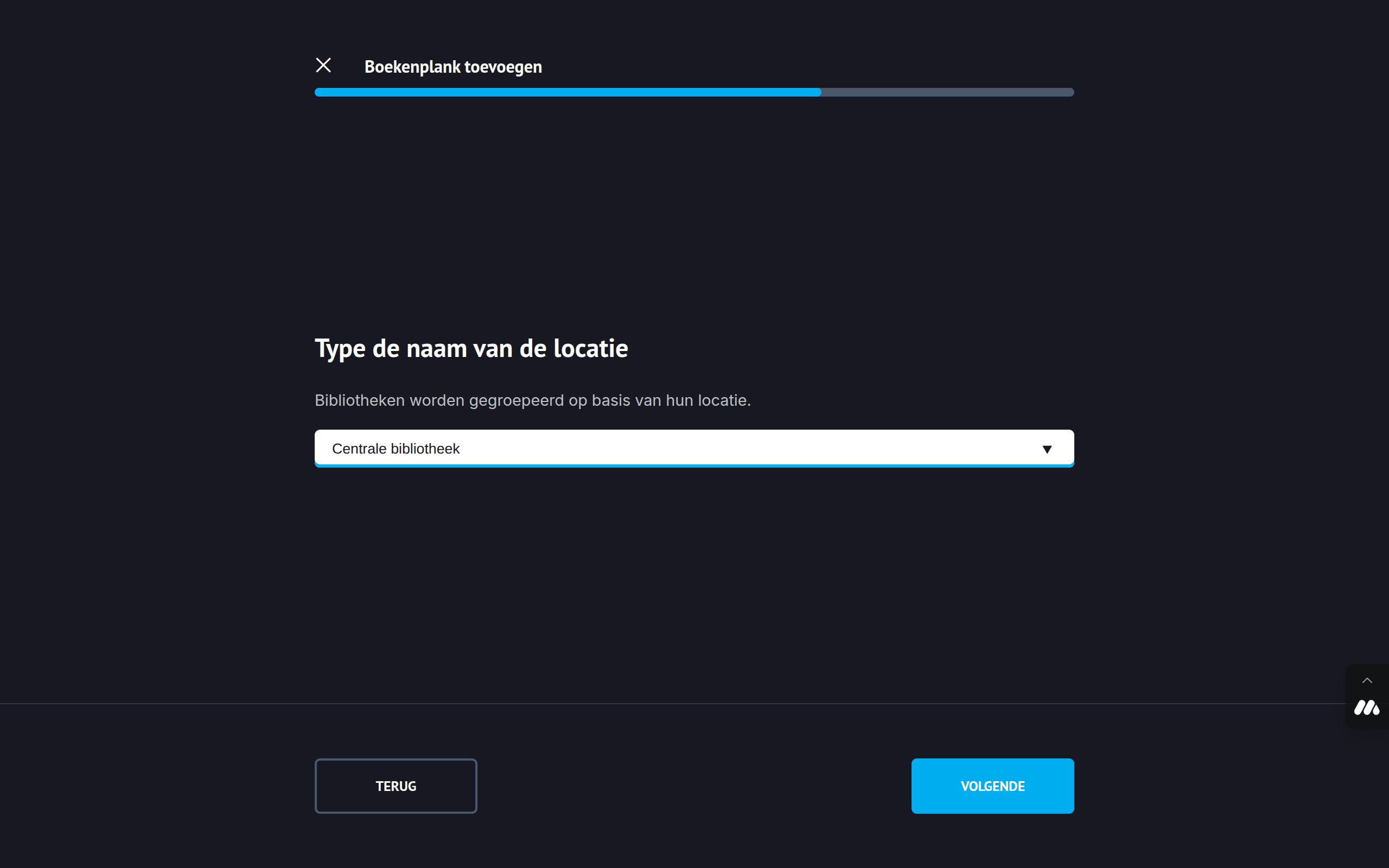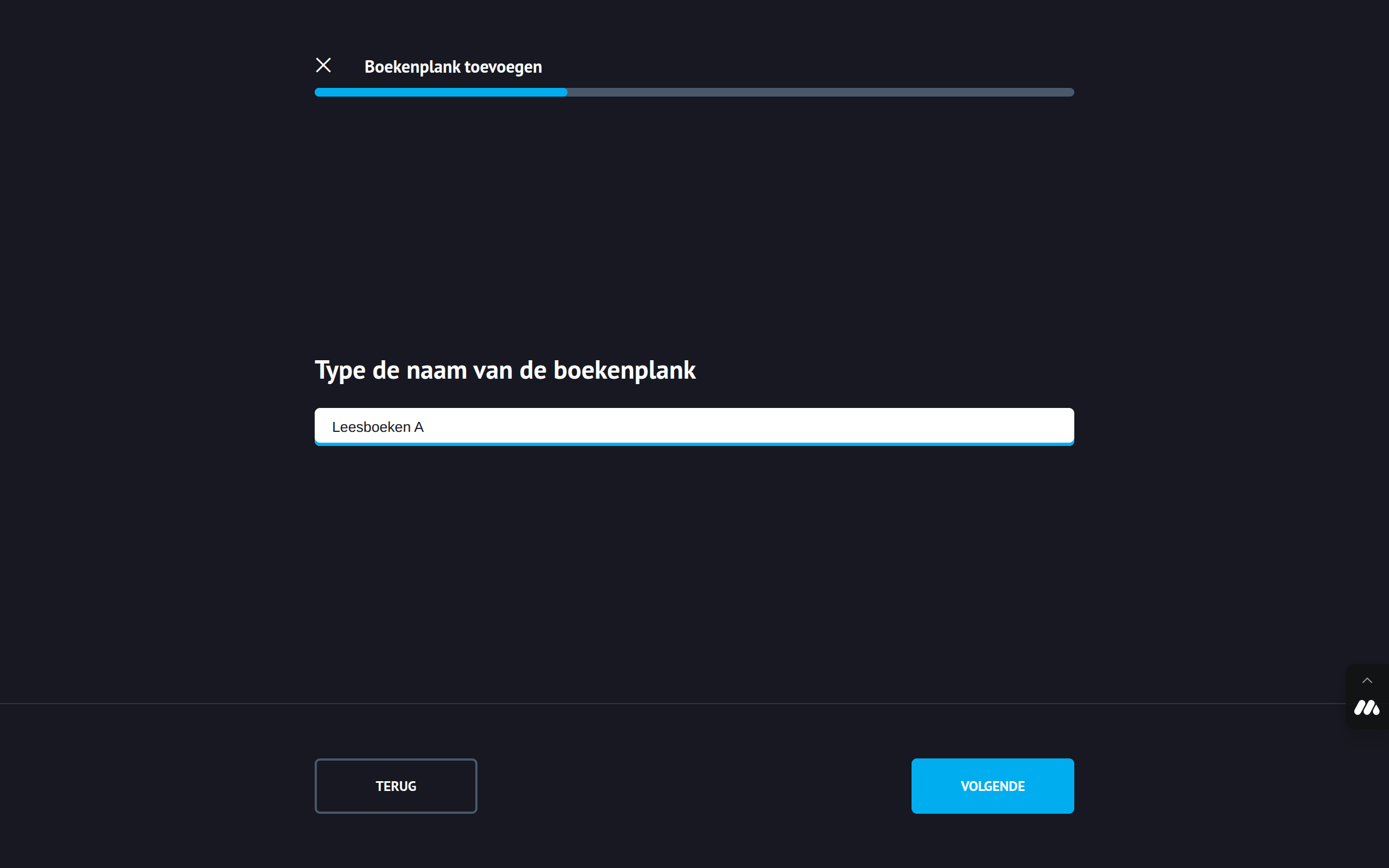 Als je kiest voor handmatig of als je al een boekenplank hebt toegevoegd, krijg je de kans om zelf een boekenplank toe te voegen.