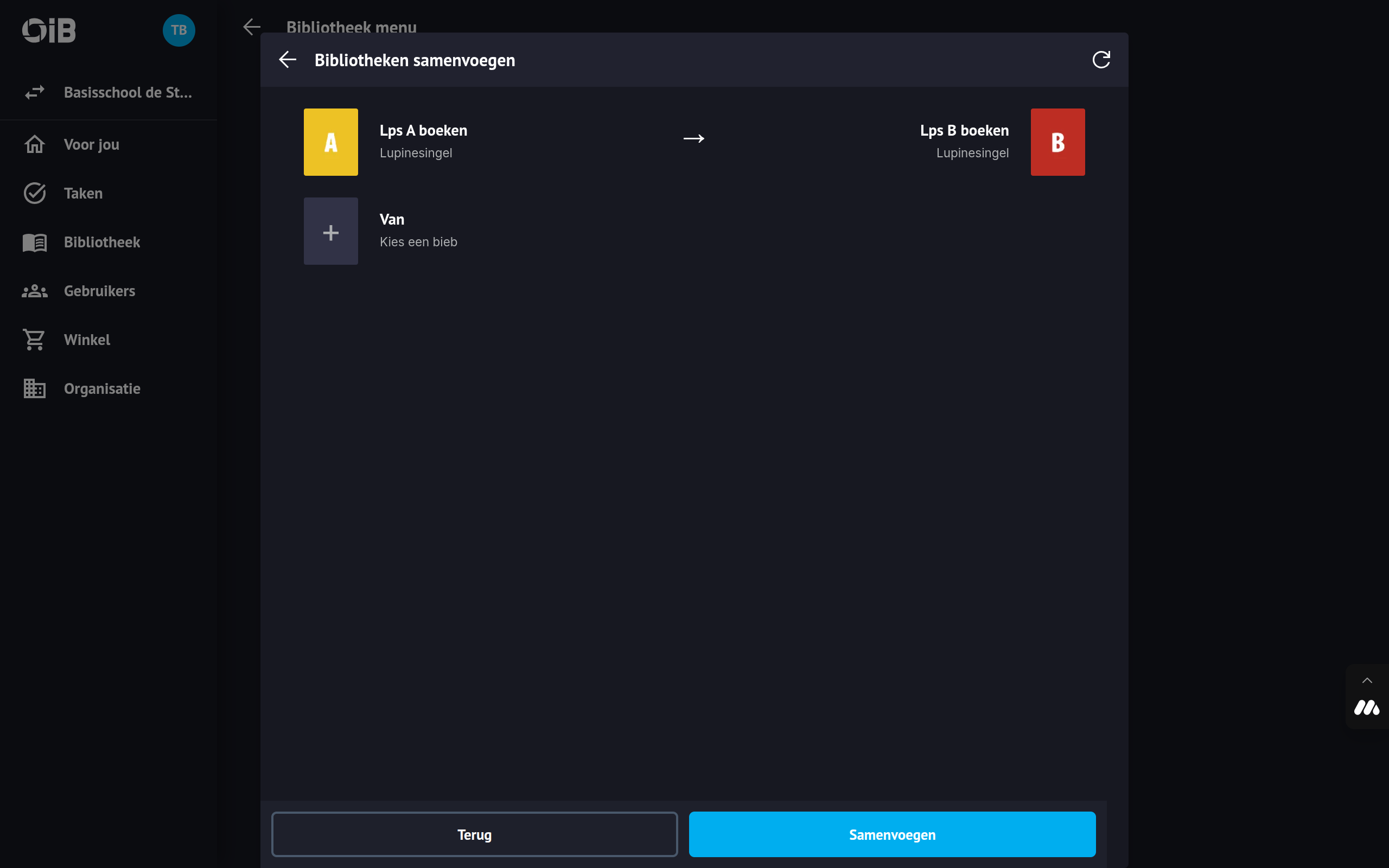 Klik op + Naar en kies een boekenplank en klik vervolgens op de blauwe knop Samenvoegen.