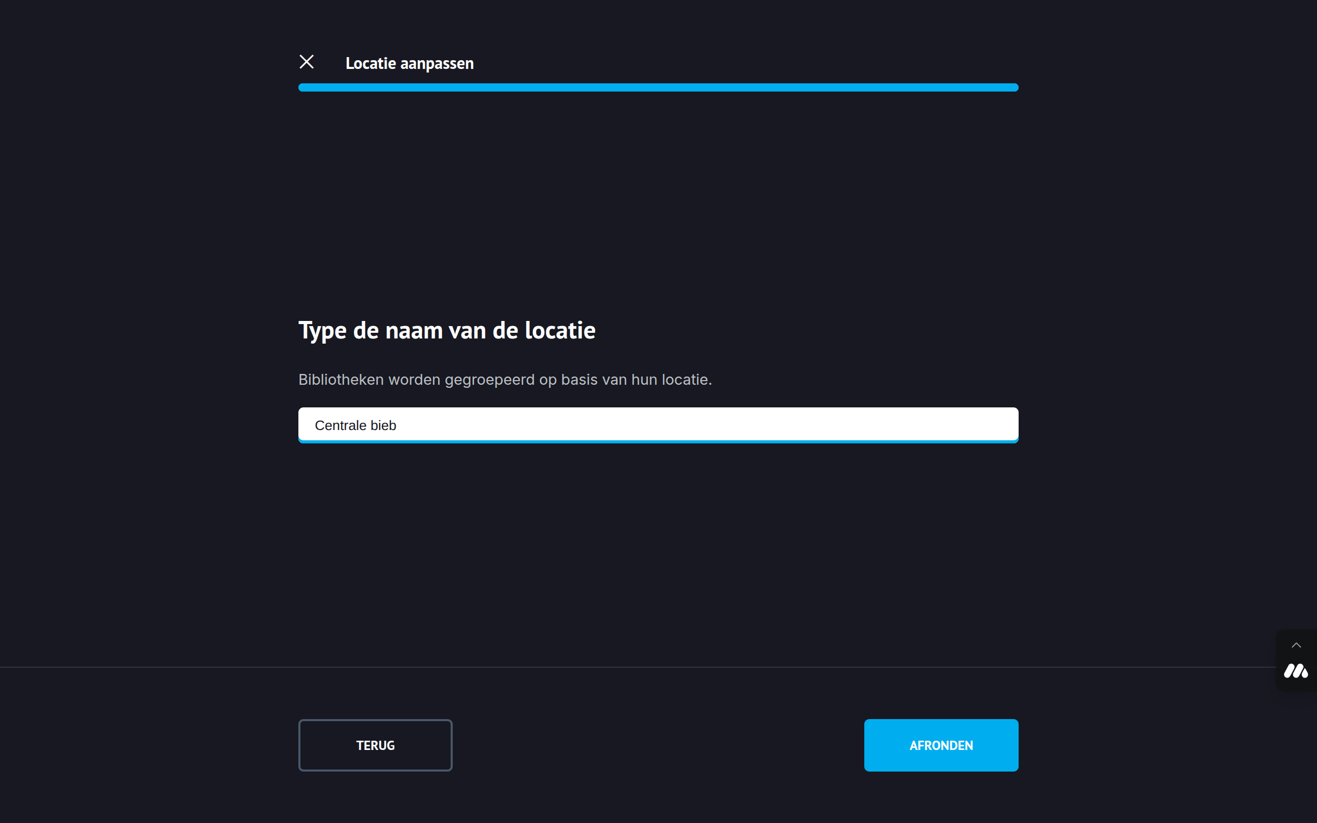 Klik op Locatie aanpassen onder het kopje boekenplank in het bibliotheek menu.