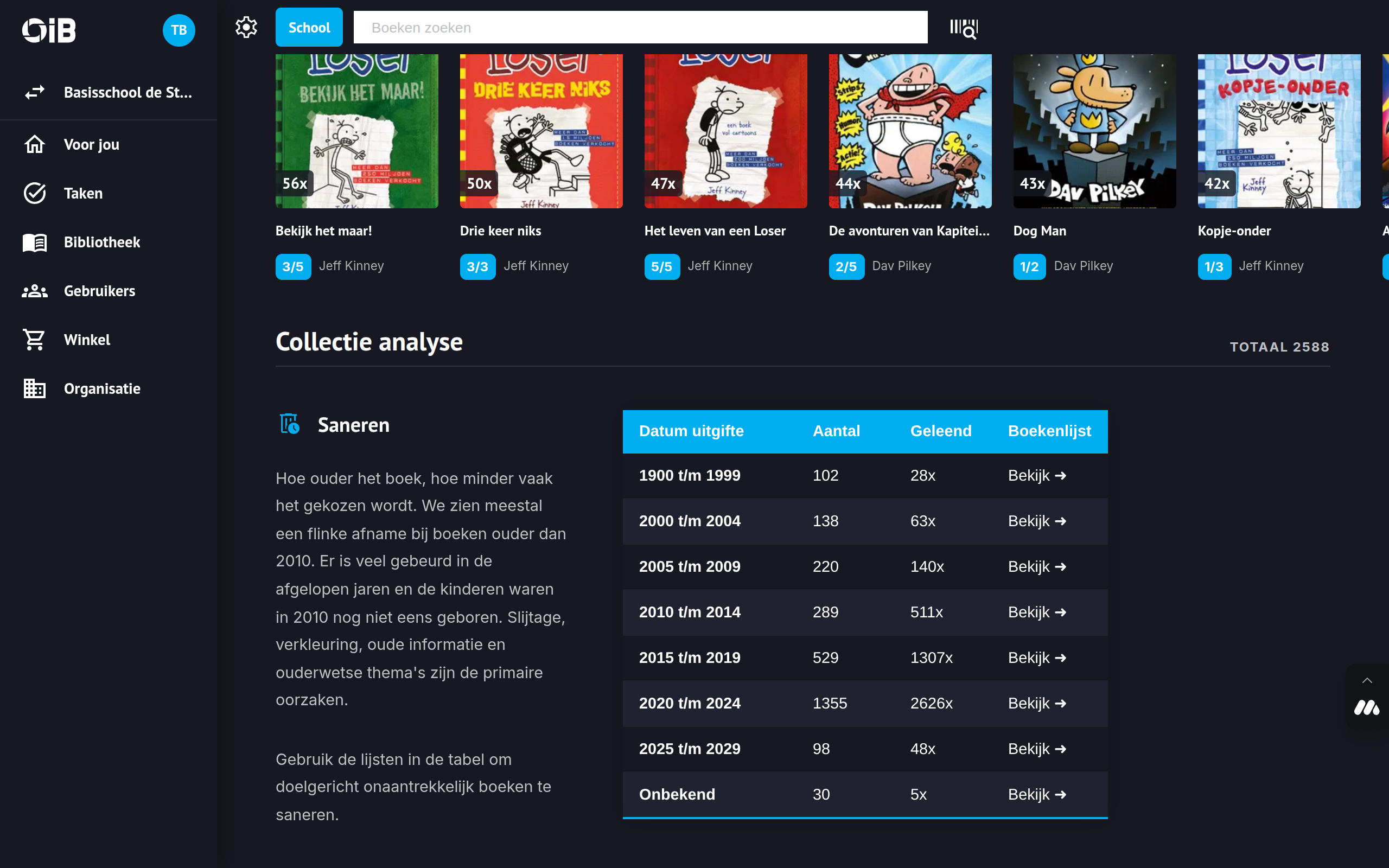 Met behulp van de collectie analyse kan je gaten in jullie boekenbestand identificeren en een advies op maat ontvangen van jullie lokale (kinder)boekwinkel.