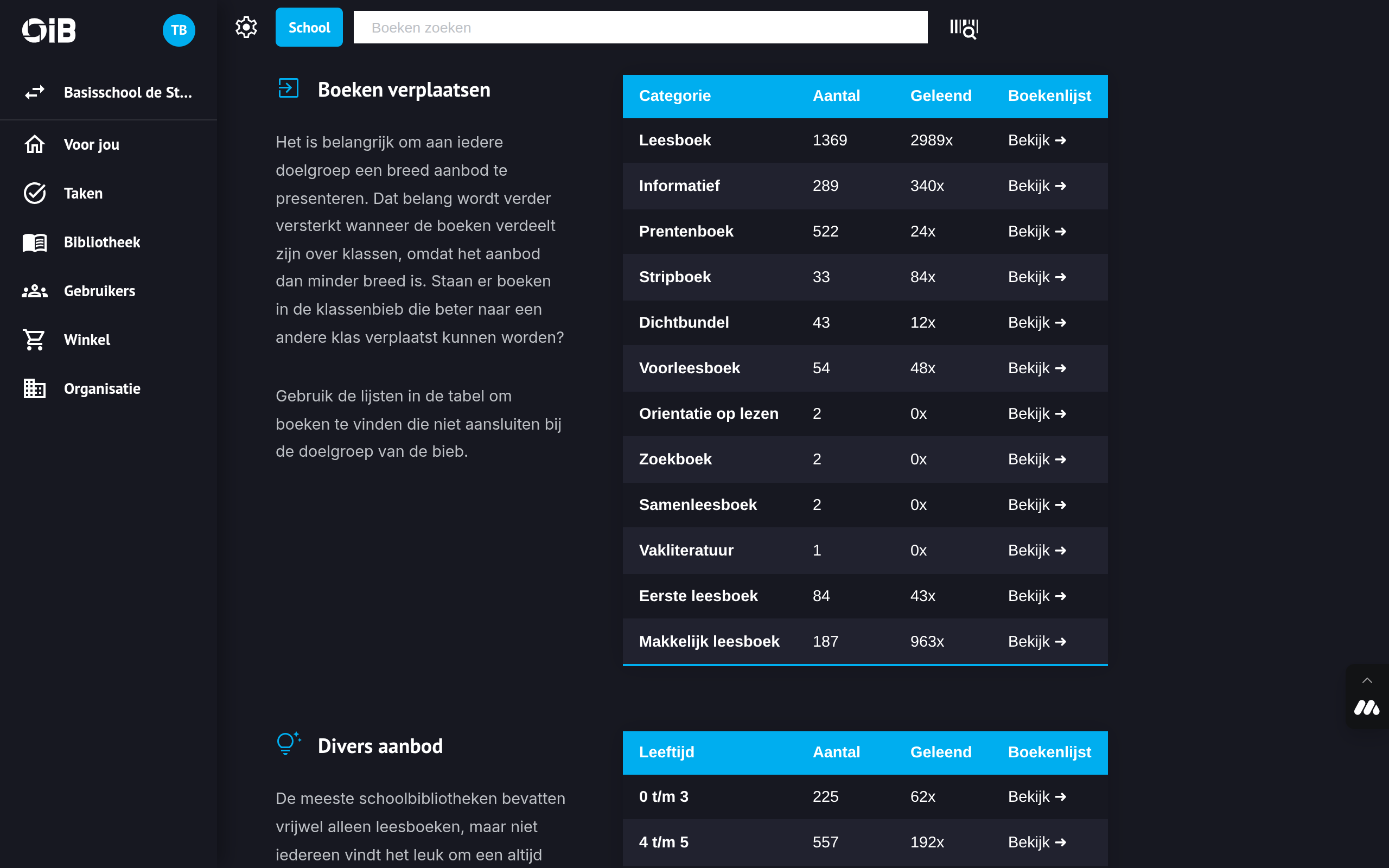 De meeste schoolbibliotheken bevatten vrijwel alleen leesboeken, maar niet iedereen vindt het leuk om een altijd een leesboek te lezen. Leerkrachten hebben behoefte aan boeken die zijn geschreven om voor te lezen. Leergierige leerlingen lezen graag informatieve boeken en soms is het gewoon lekker om er een stripboek bij te pakken. Het belangrijkste is dat de leerlingen met plezier blijven lezen.