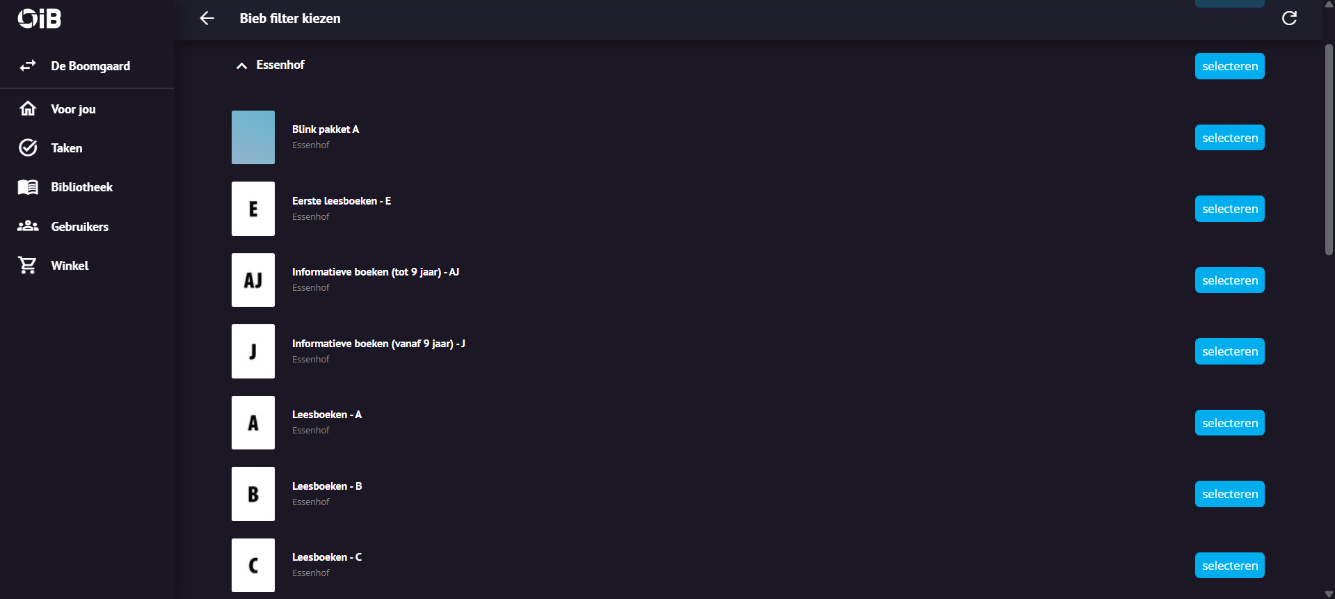 | B | Boeken van minstens AVI E4 voor kinderen van 9 t/m 11 jaar |