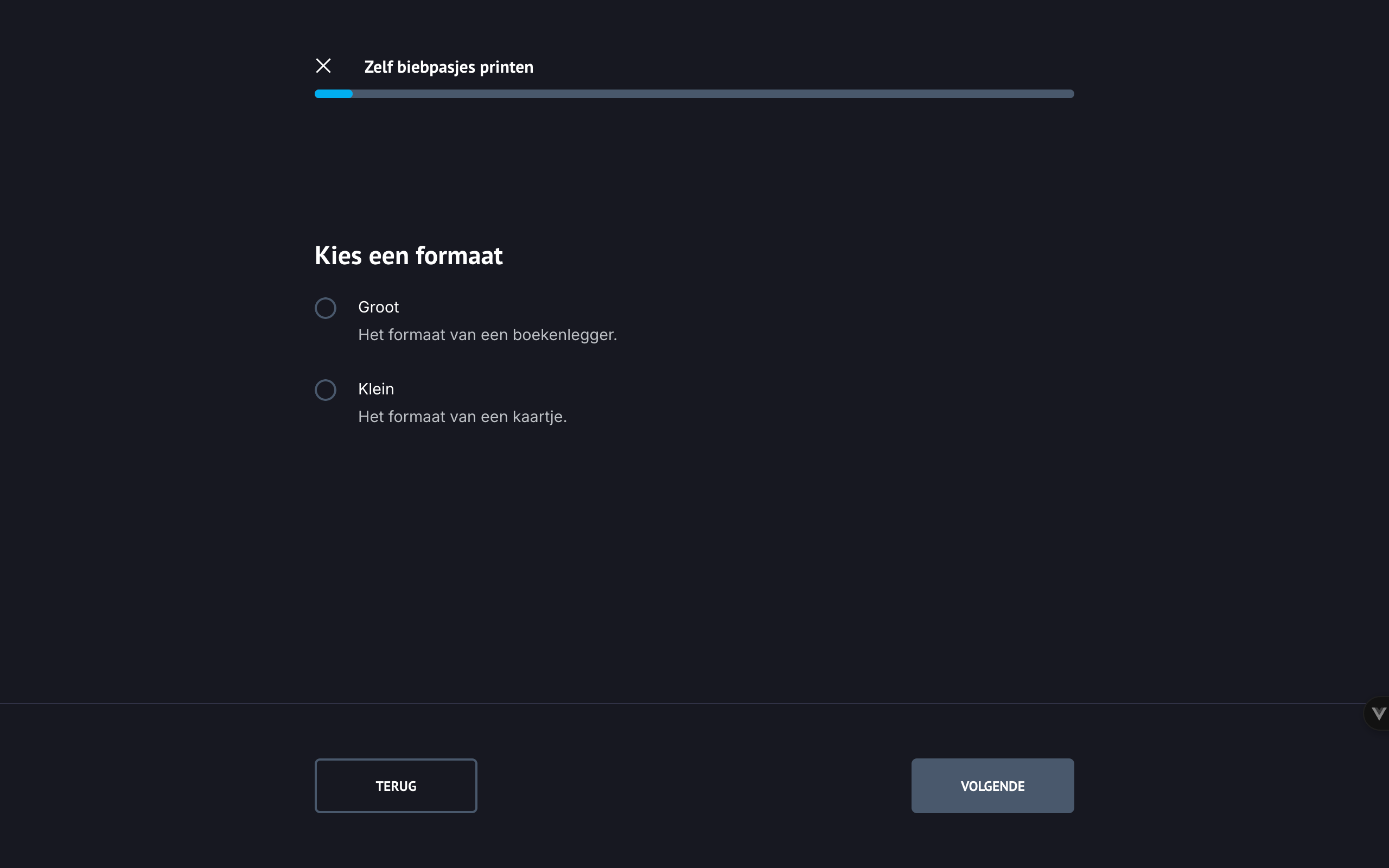 In het eerste scherm selecteer je het formaat.