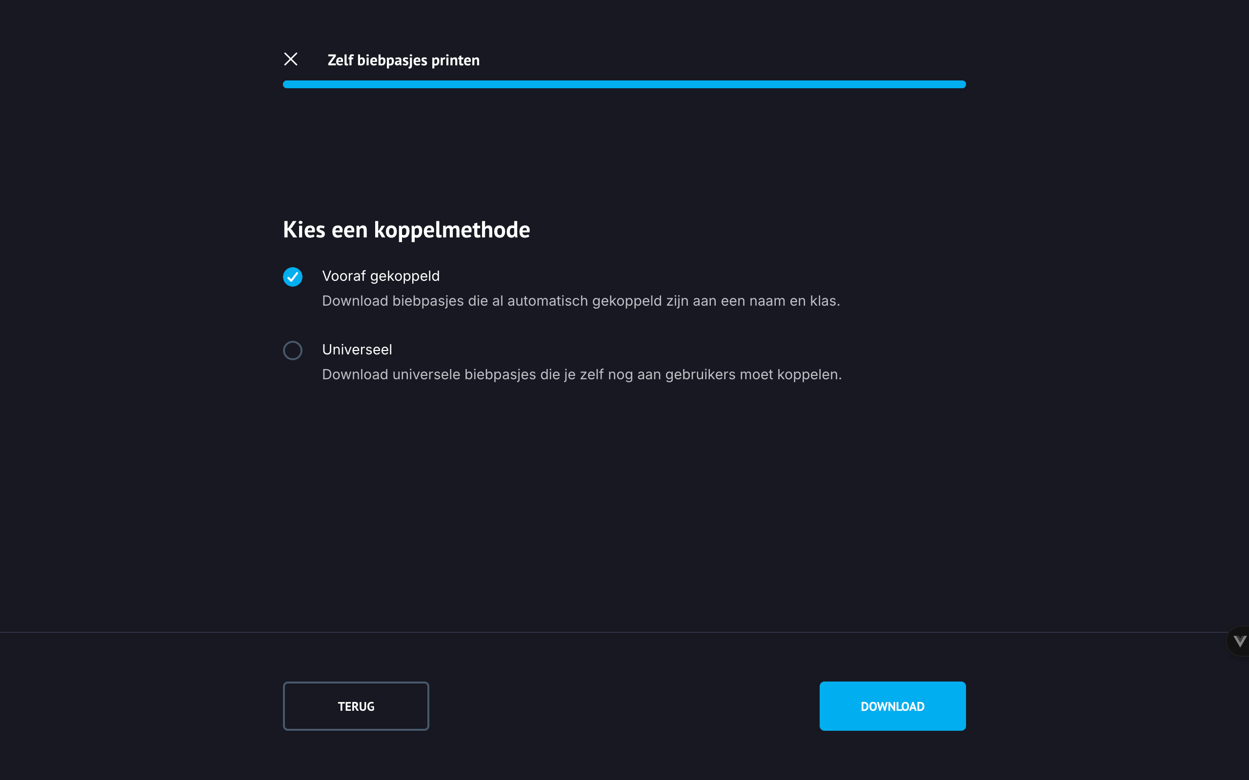 Navigeer via het menu naar gebruikers en klik linksboven op het tandwiel. Klik onder het kopje biebpasjes op zelf printen.