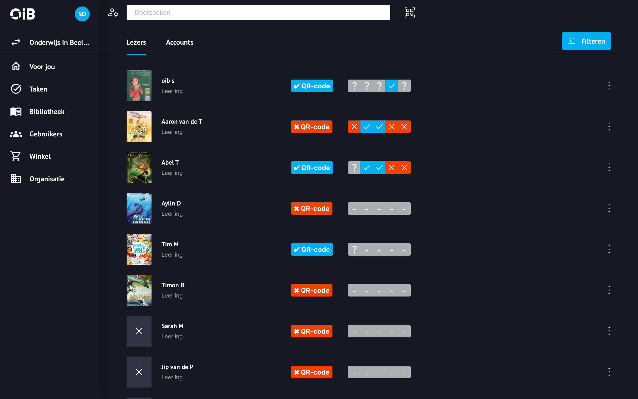 De naam van een gebruiker vragen en zoeken op naam in de lijst met gebruikers is inefficient. Door de QR-code van de gebruiker te scannen kun je heel snel het leesprofiel van de gebruiker laden.
